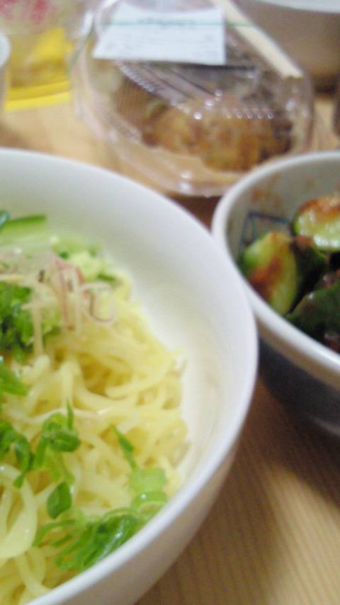 冷やし中華と梅きゅうとネギだこ