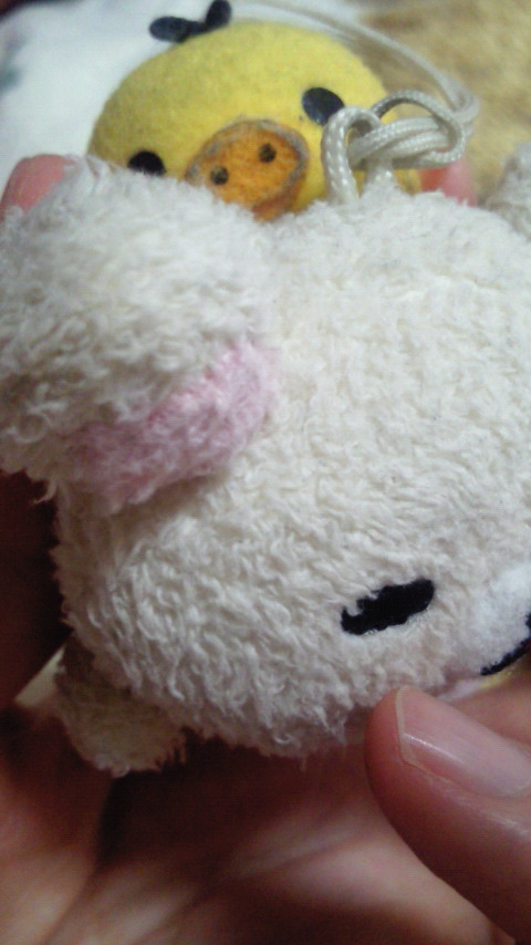 …白いとこれだからなー。ストラップあかずきんと交換だね。