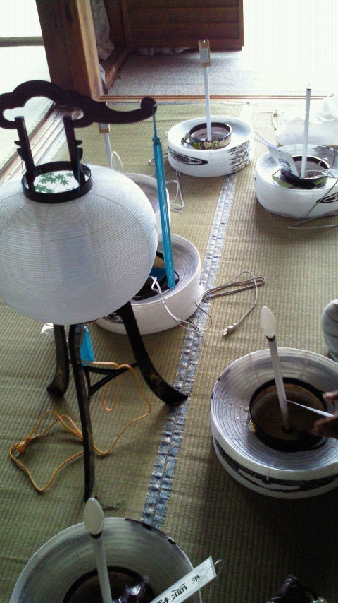 おじいちゃんとちょうちんをいっぱい組み立てたー
