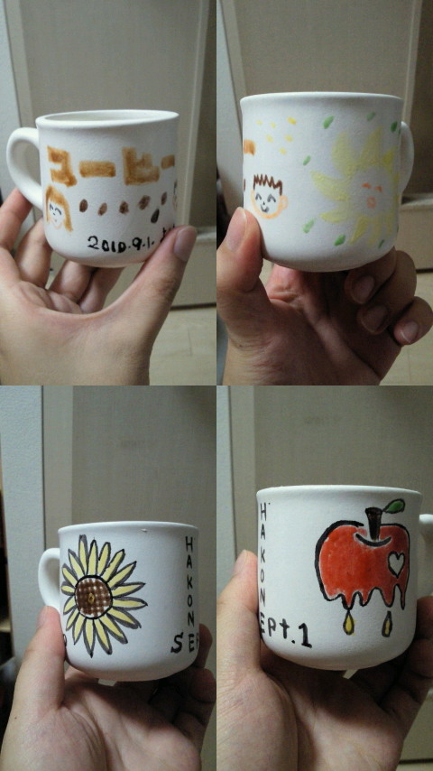 上の…コーヒーカップにコーヒーって書いちゃう感じとか、男の子と女の子の描き方とか…幼稚園生にしか出来ないタッチの絵!
