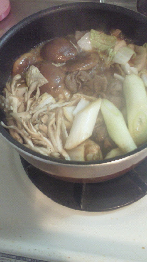 家でやるとすき焼き鍋がないので、すき焼き風鍋みたいになるー(´∀`)