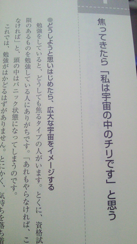 2度目だった! 大学1年の落ち込んでた時に読んでた本に、この前、先生に励まされた言葉と同じことが書いてあった!!もうこれは私のキーワードだね!!アドレスを uchyuu-no-chiri に変えるしかないよね!!(絶対にない…ちっぽけな悩みに追いつめられる必要はないのです。なんとか良いように滑りこむのみ⊂二二二( ^ω^)二⊃ブーン