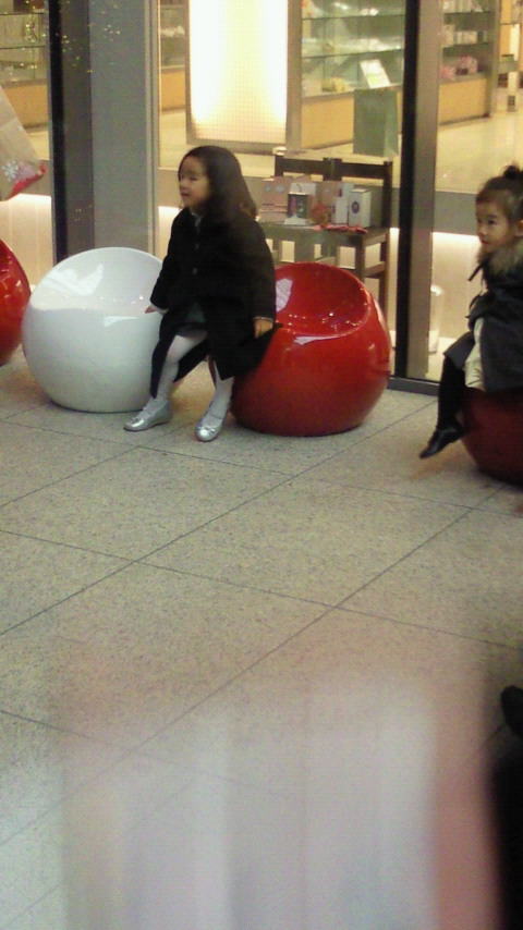 赤白の椅子と子どもがクリスマスっぽい(´∀`)
