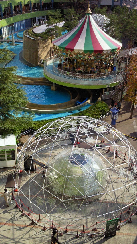 あのLaQuaイルミネーションの中身、昼間見たら緑色になっててさ、何かなーと思ってたんだよねー。