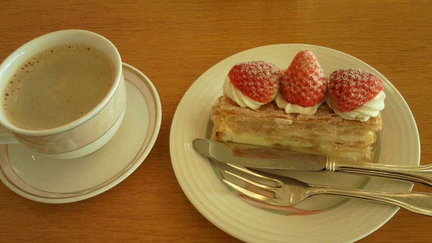 ホテルで休憩。ミルフィーユ食べるの難しい。
