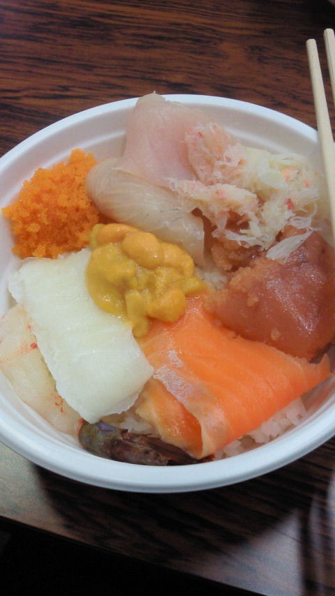 勝手丼 最終日の朝ご飯に勝手丼を食べに連れていってもらいましたー。 全部すごい美味しいー!!ウニを初めて食べたんだけど、絶品!!案内してくれたホッケー部の2人に感謝!!あと、ゼミの人達で釧路行けて最高でしたヽ(´▽`)/本当に楽しかったー!!