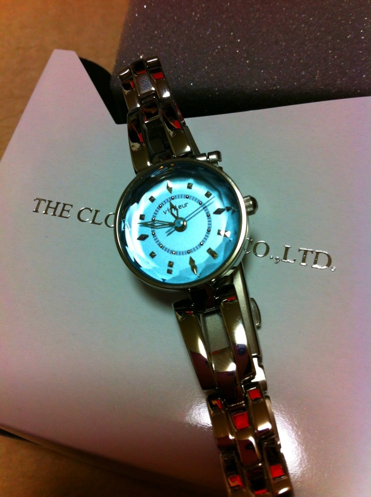 (untitled) 時計が止まったのでいい機会だと思って、購入。半月くらい時計しないで暮らしてたけど、やっぱり仕事で不便。あえて、ピンクはやめてブルーの文字盤。凛と出来ますように、と思って!あ、自分で時計買ったの初めてかも。