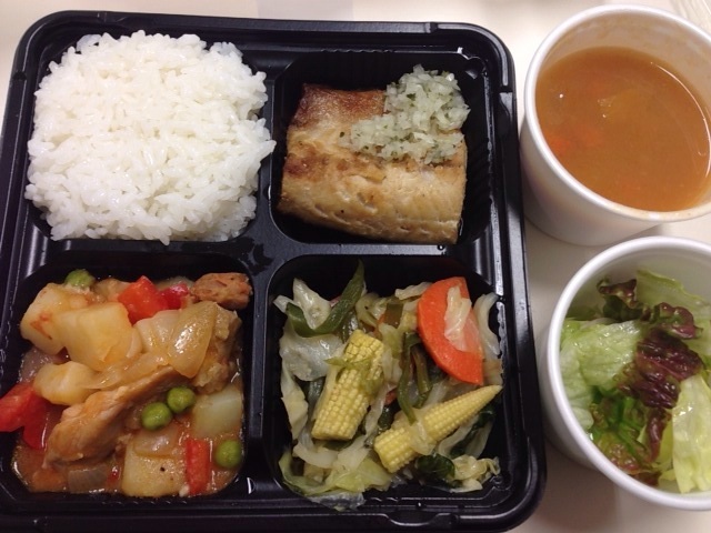 ポルトガル料理のお弁当って謎だな、何味だよ、と思って見つめてたら、300円引きで更にスープもおまけしてくれた。…なんでだろ、ラッキー笑